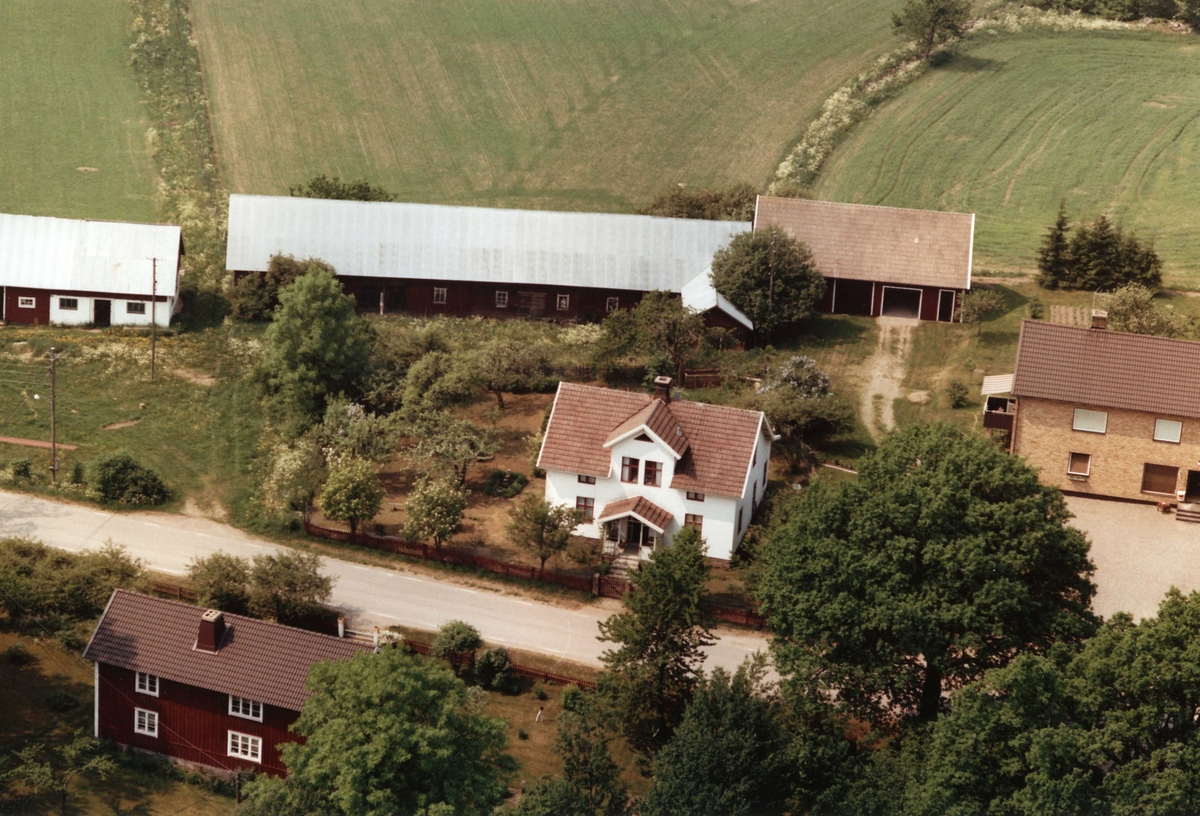 Flygfoto över den vita fastigheten Kättorp 10 i Hultsjö, Sävsjö kommun.