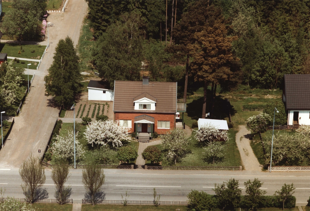 Flygfoto över fastighet på Vetlandavägen 37 i Landsbro, Vetlanda kommun.