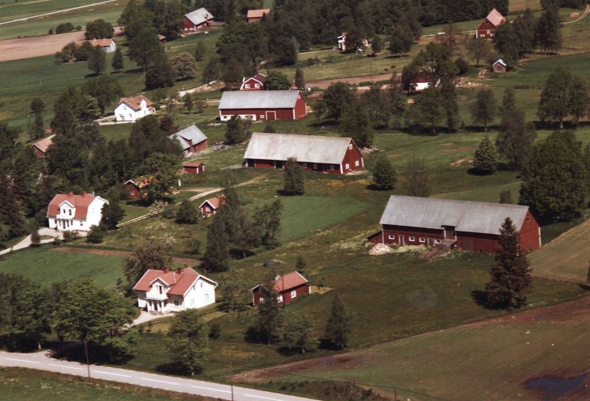 Flygfoto över fastigheter på Bergsgården i Fryele, Värnamo kommun