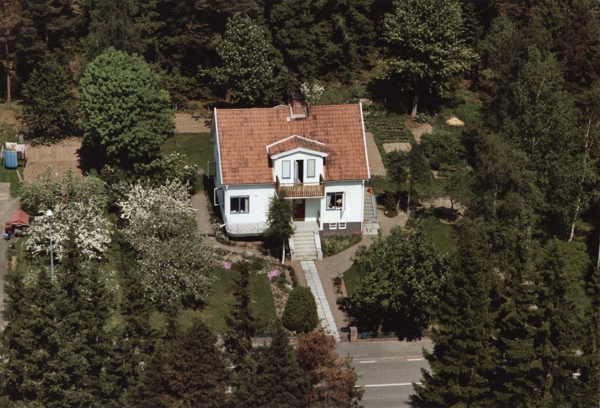 Flygfoto över fastighet på Vetlandavägen 55 i Landsbro. Vetlanda kommun.