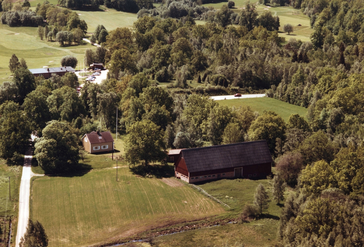 Flygfoto över fastighet Uragården 1 Näsbyholm vid Värnamo Golfklubb i Jönköpings län.