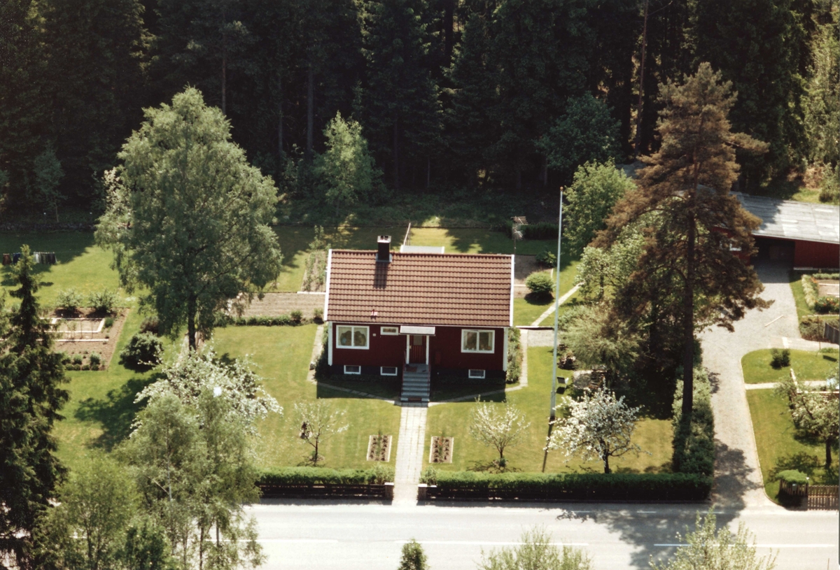 Flygfoto över fastighet på Vetlandavägen 30 i Landsbro. Vetlanda kommun.