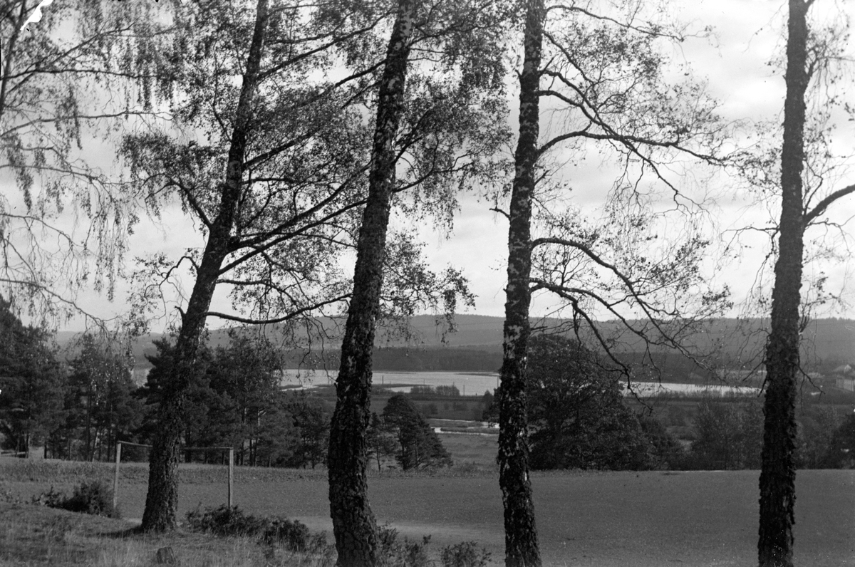 I förgrunden bakom träden ligger en fotbollsplan. I bakgrunden syns Munksjön, söder om Jönköping.