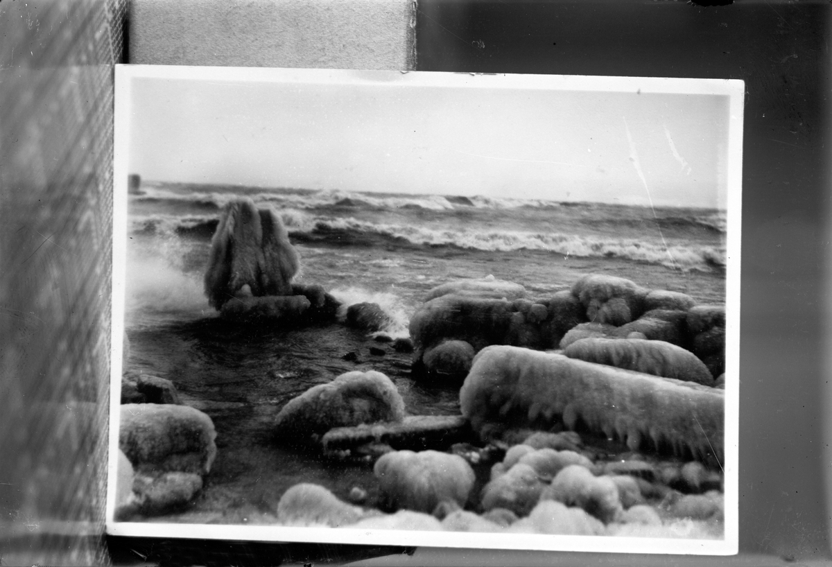 Avfotograferad bild med motiv från en storm vid Vätterstranden i Jönköping.