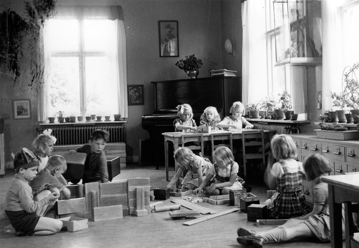 Barnen leker i Skyddsskolan på Brunnsgatan 30 i Jönköping, senare Västra förskolan.