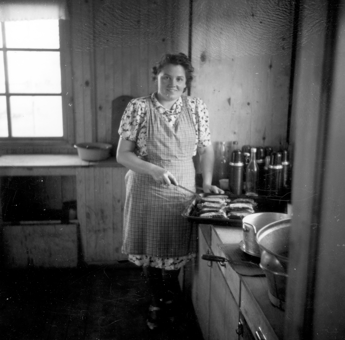 En kvinna i sitt kök i en trång och omodern lägenhet i Jönköping.