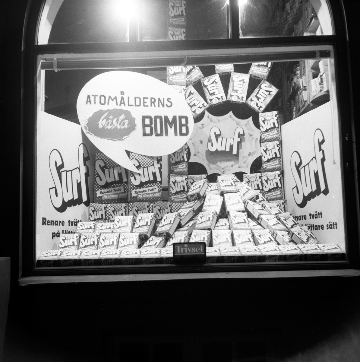En butik i Jönköping gör reklam för Surf i sitt skyltfönster.