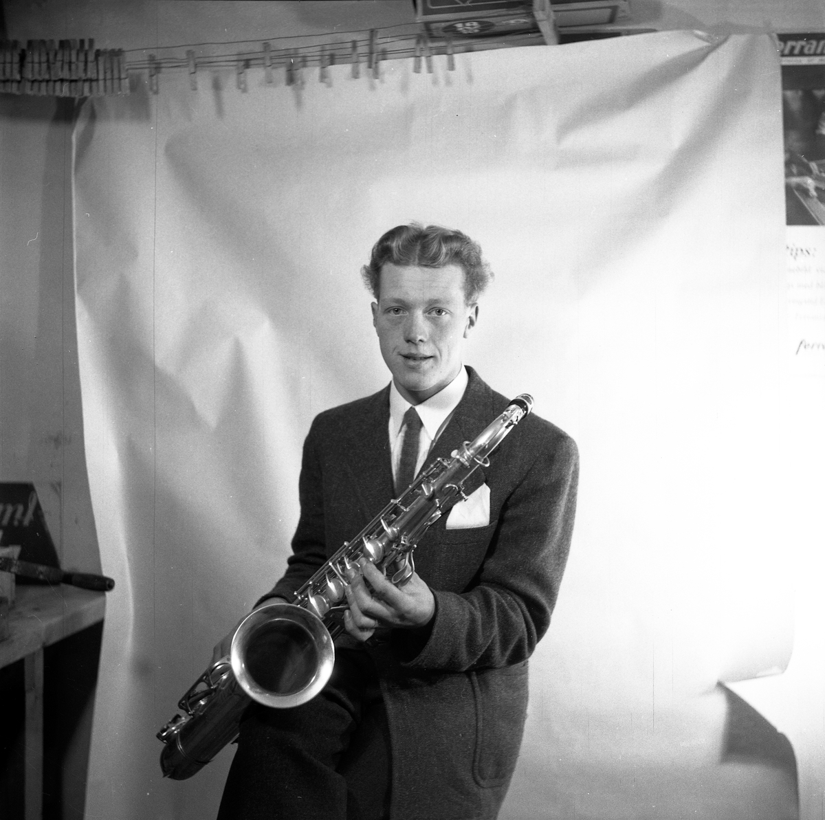 Porträtt av en man i ateljén som Gustav Andersson lånade av fotograf Axberg. Den låg i korsningen Sjögatan/Gröna gatan i Jönköping.