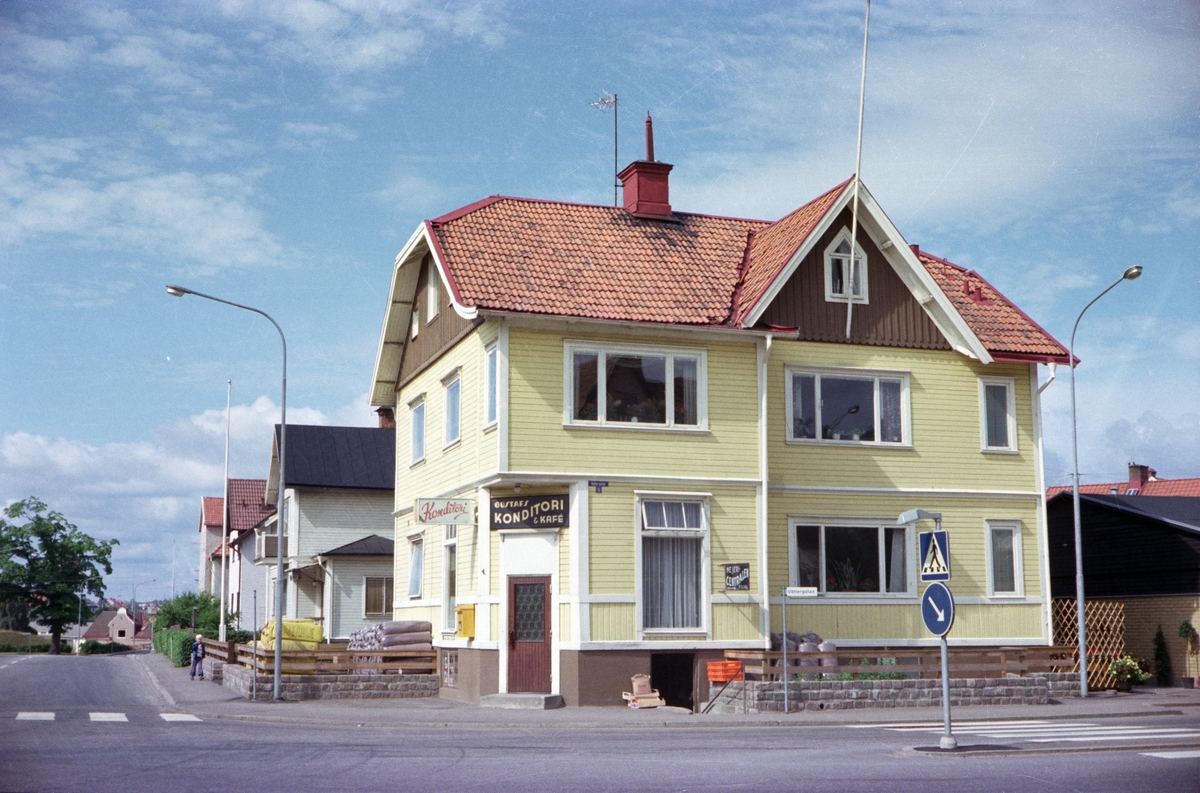 Gustavs Konditori som startade 1932 ligger vid korsningen Vättergatan - Torsgatan i Huskvarna. I källaren ligger Mejericentralen, en liten speceributik, skylten syns vid trappnedgången till butiken.