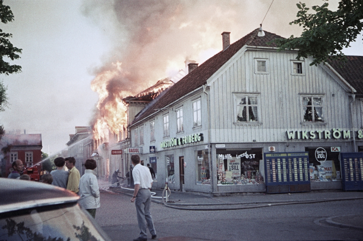 Titel: Branden på Målargatan vid Östra torget i Jönköping.