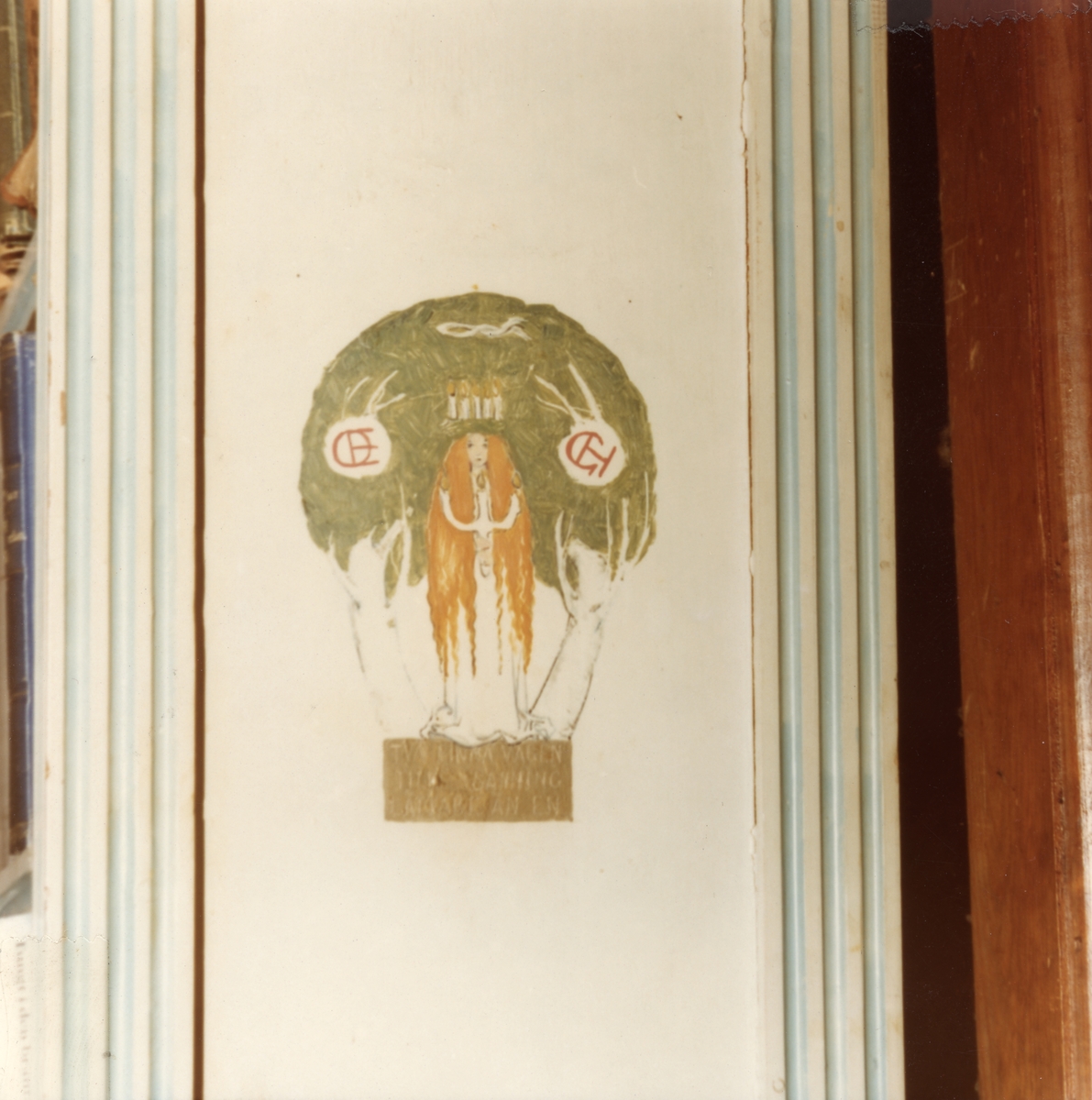 På Gurli Hartzman-Ericsons bokhylla i Göteborg har John Bauer målat "Exlibris".
