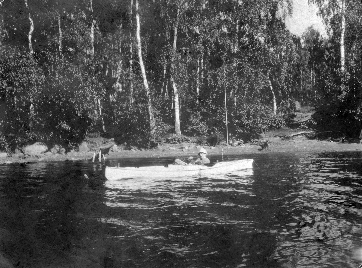 John Bauer i en kanot vid Björkudden på sjön Bunn utanför Gränna.