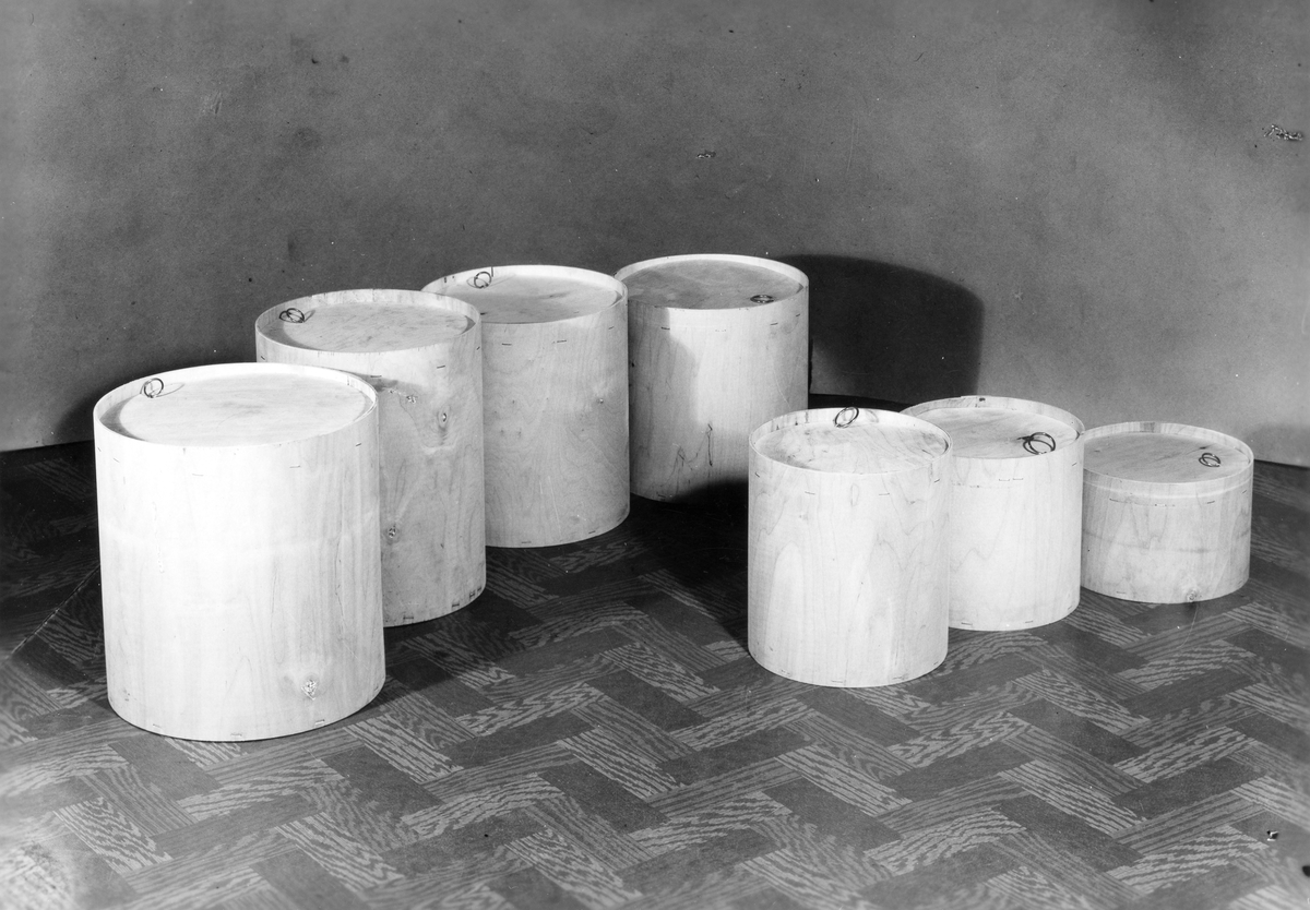 Plywoodtunnor med lock från Habo Laggkärlsfabrik.