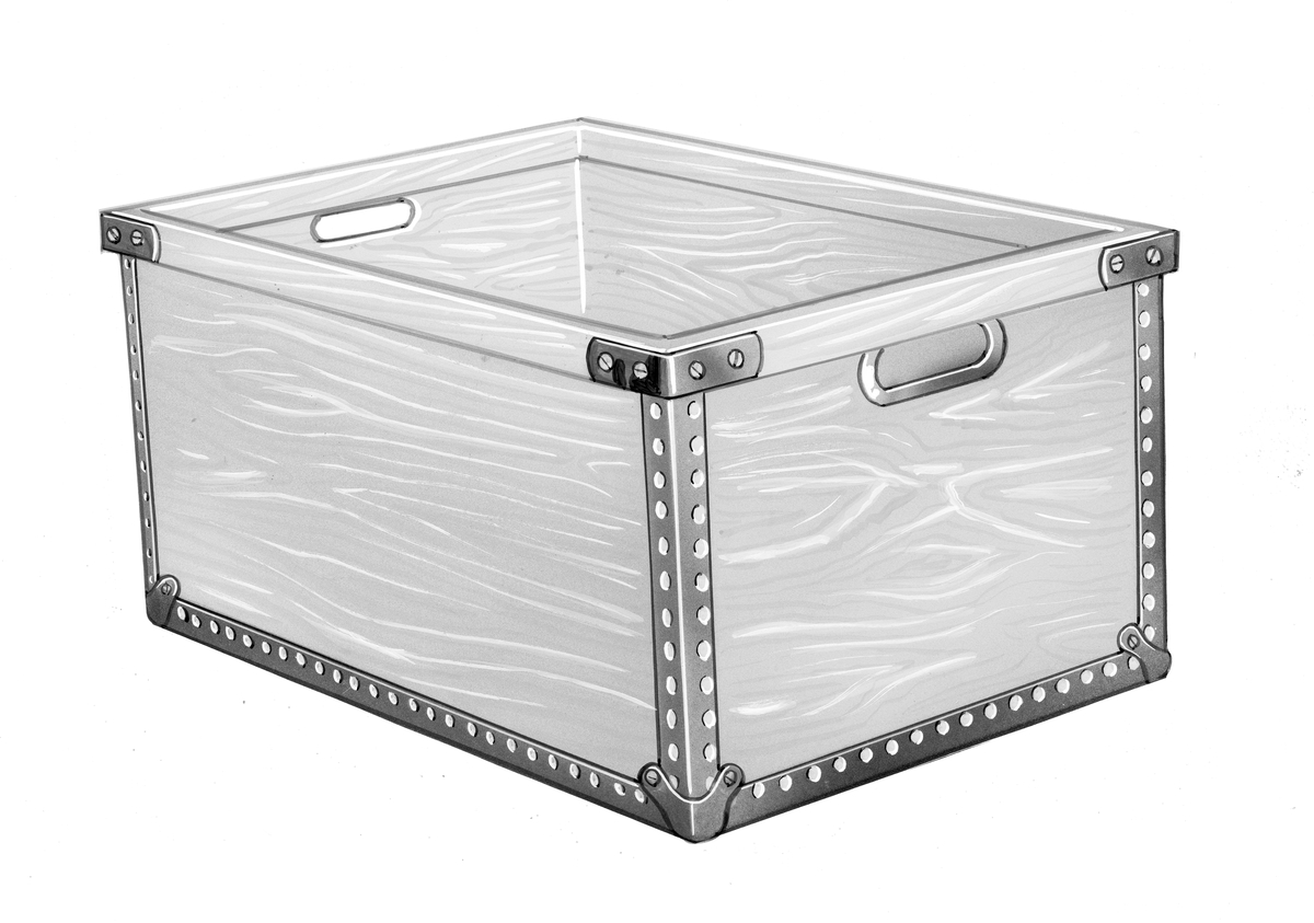 En tecknad plywoodlåda från Habo Laggkärlsfabrik.