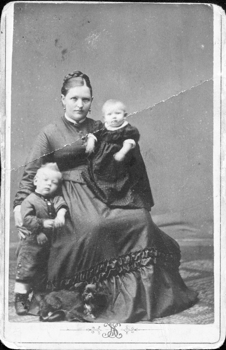 Porträtt av Emma Bauer med barnen Hjalmar och Anna.