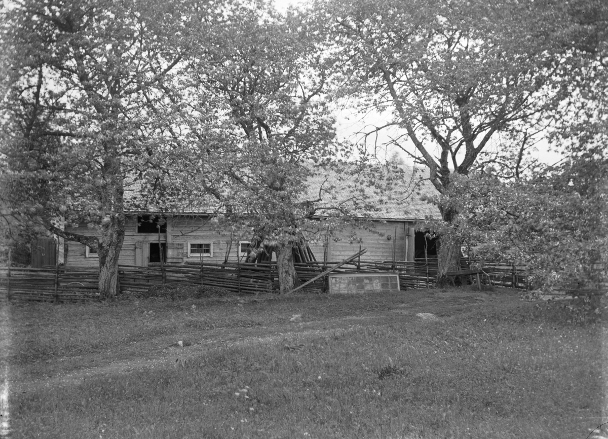 En lada omgiven av träd på Fageräng i Vetlanda.