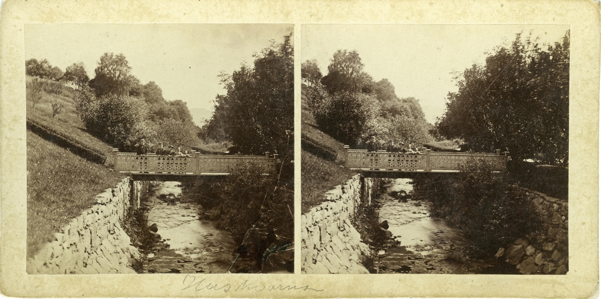 Några pojkar står på en bro över en å i Jönköping eller Huskvarna.