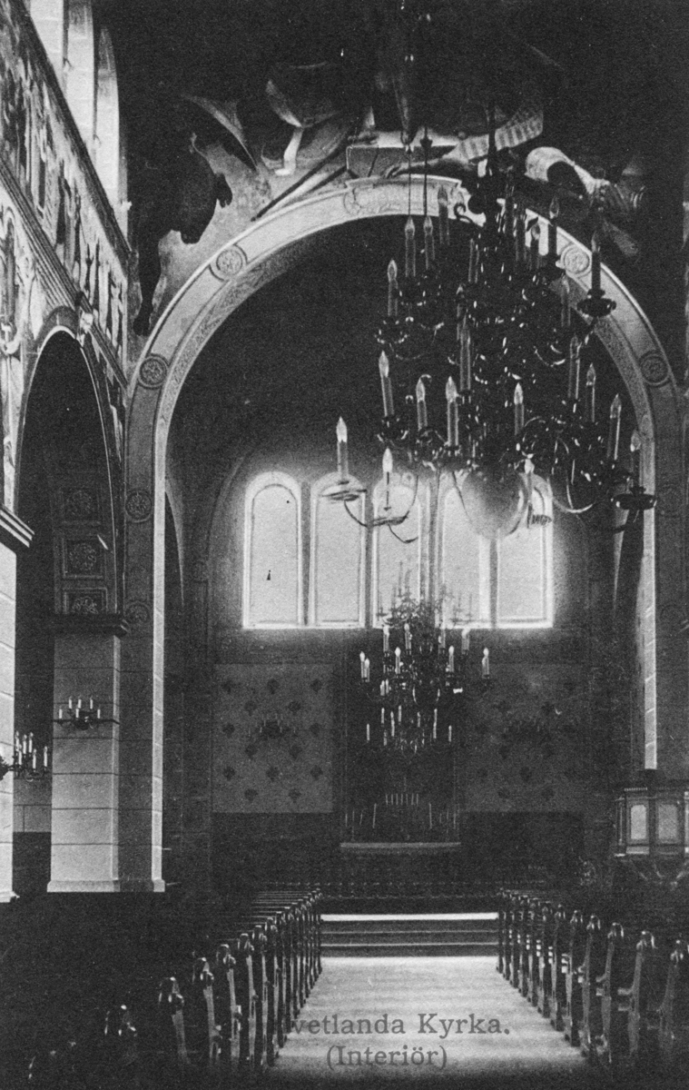 Brevkort av interiören i Vetlanda kyrka.