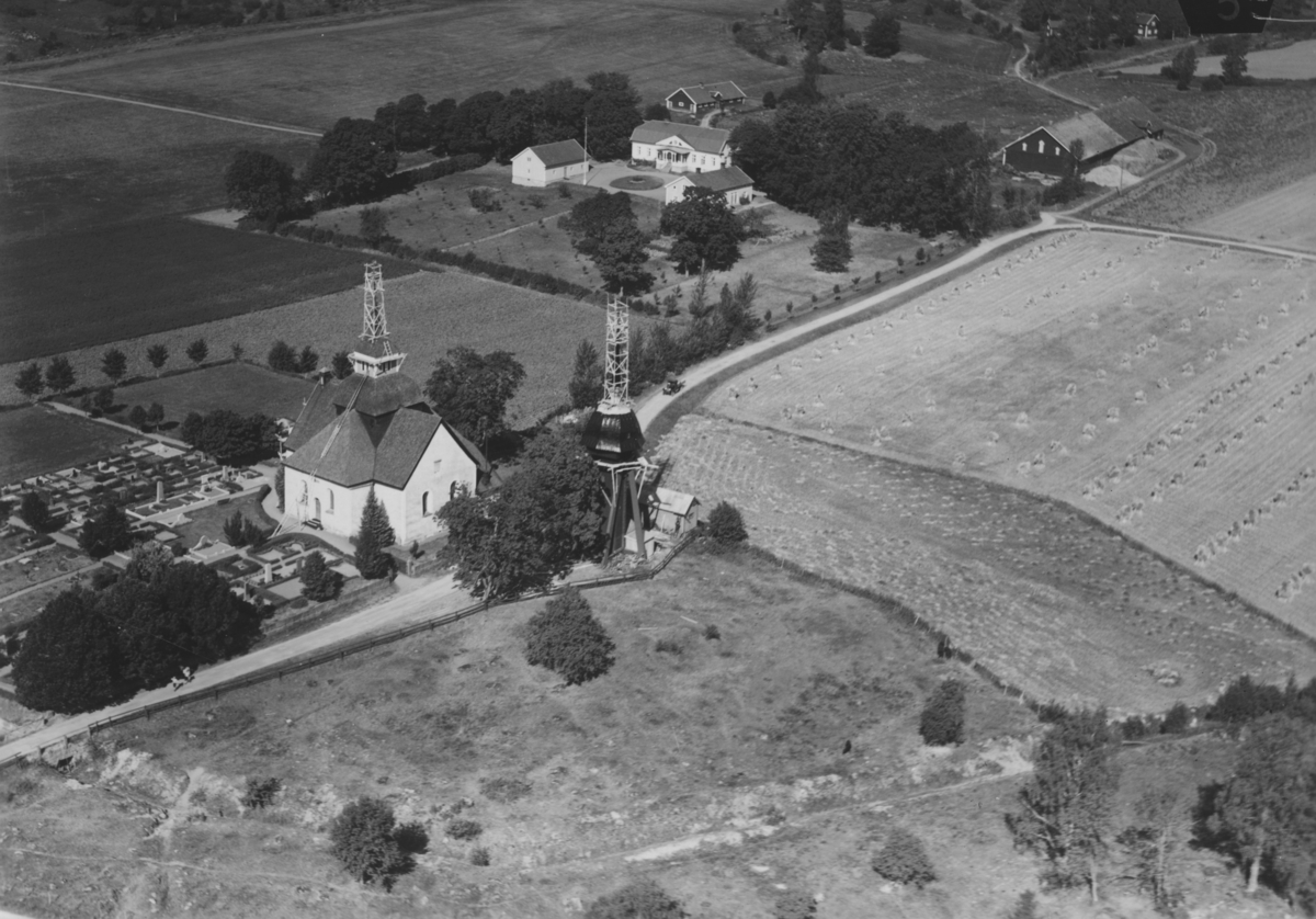 Flygfoto över Hakarps kyrka i Huskvarna. Nr. C. 1860.