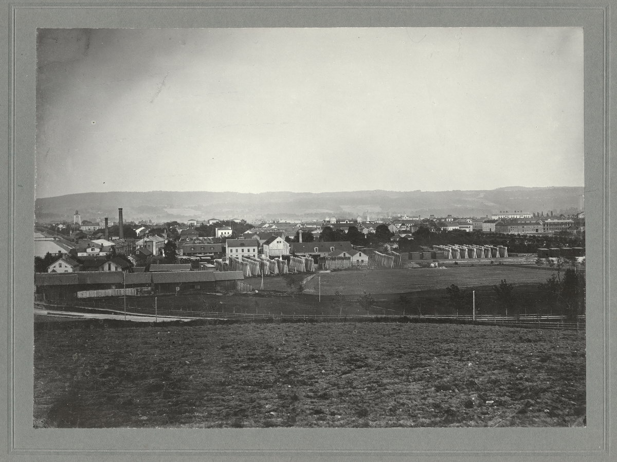 Jönköping väster före Sofiakyrkans uppförande. Foto taget från Talavidområdet, i fonden Ekhagsområdet.