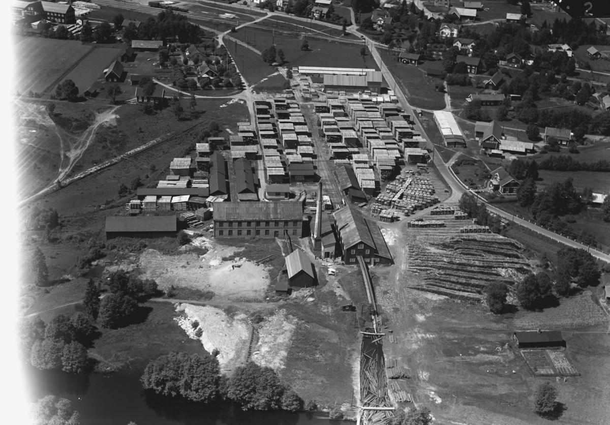 Flygfoto över Sågverk i Smålandsstenar, Jönköpings län. Nr D.1856.