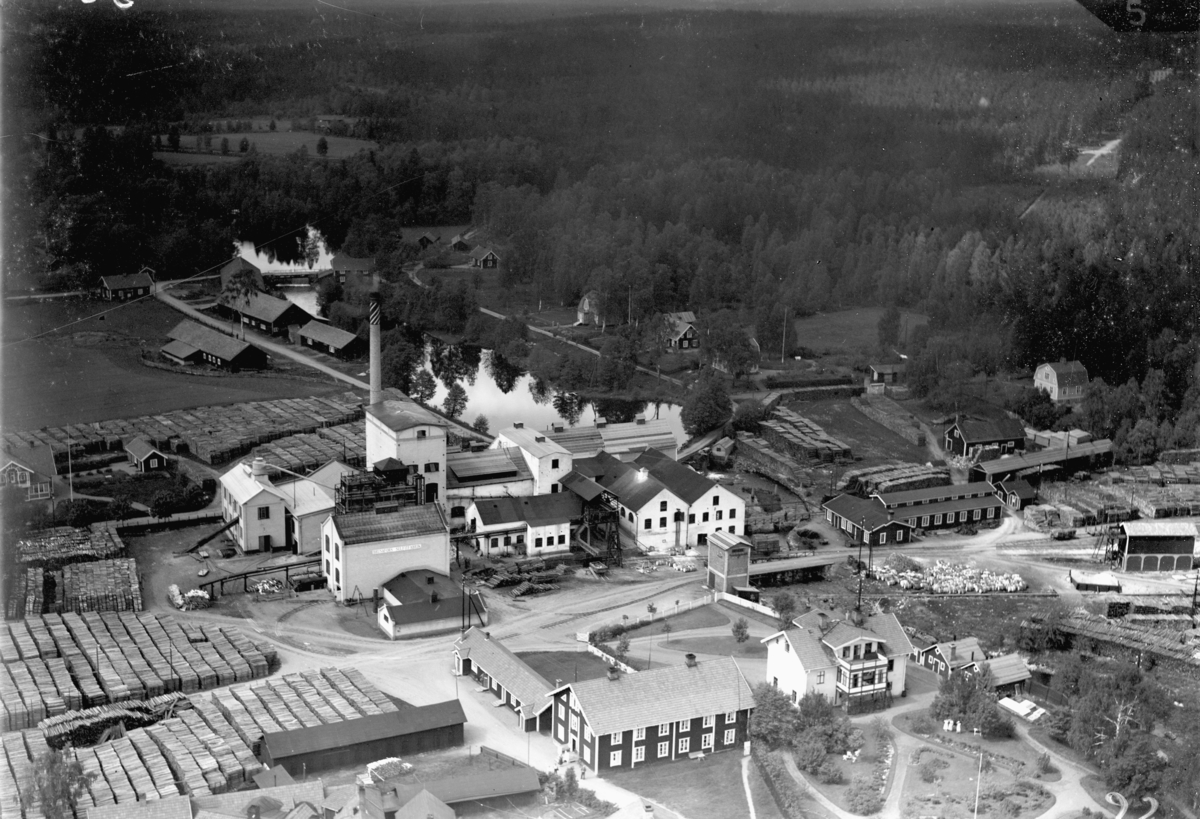 Flygfoto över Brusafors Sulfatfabrik i Mariannelund, Eksjö kommun. Nr. E 237.