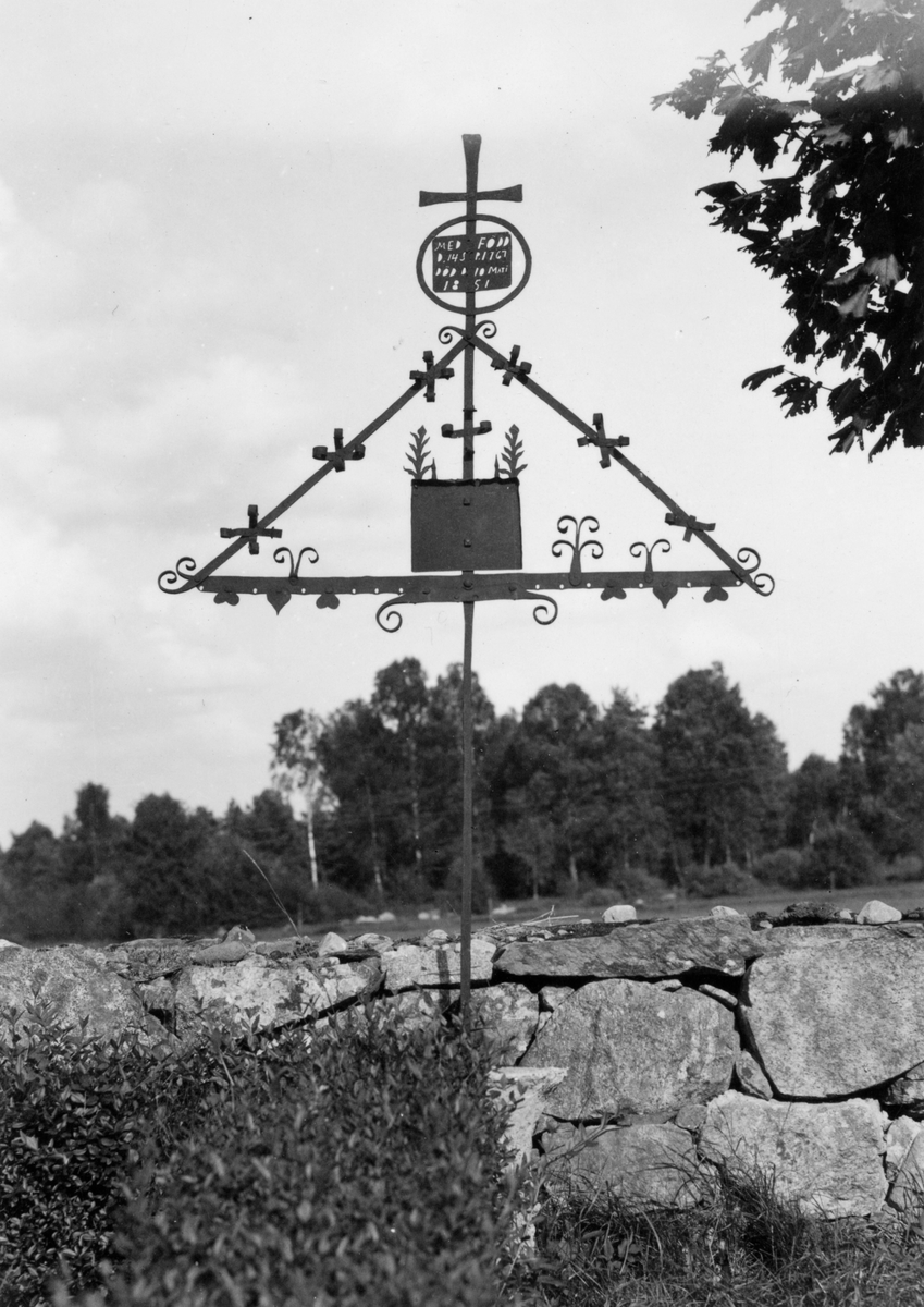Gravkors av smitt järn på kyrkogårdsmuren vid Rydaholms kyrka i Värnamo kommun.