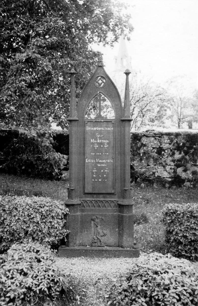 En gravvård av gjutjärn över bruksförvaltaren i Åminne bruk, Filip Malmström och hans maka Ester, på Kärda kyrkogård.