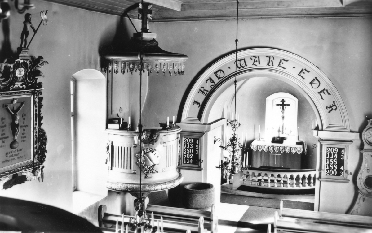 Interiör från Torskinge kyrka i Värnamo kommun.