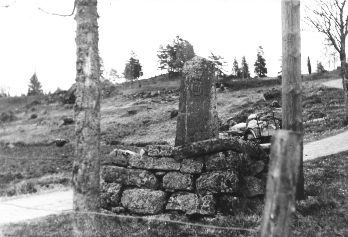 En milsten märkt G.III vid Trolle klippa utanför Bor, Värnamo.