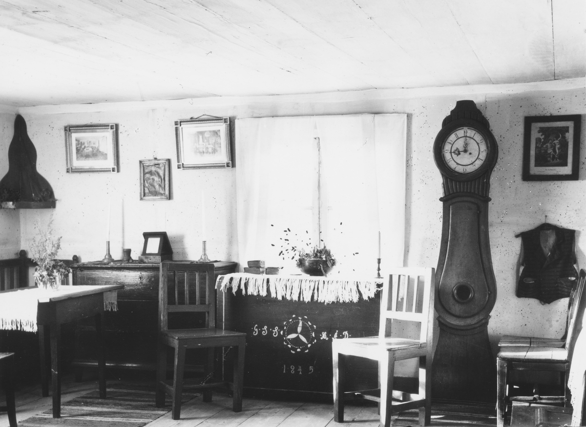 Hembygdsgården i Voxtorp, Värnamo. Rumsinteriör från storbondestugans bottenvåning, norra rummet.