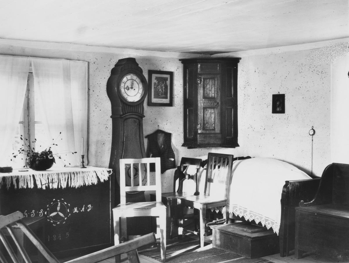 Hembygdsgården i Voxtorp, Värnamo. Rumsinteriör från storbondestugans bottenvåning, norra rummet.
