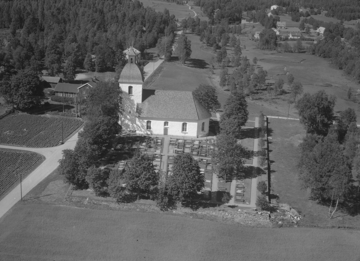 Flygfoto över Gällaryds kyrka i Värnamo Kommun. Nr K 131
