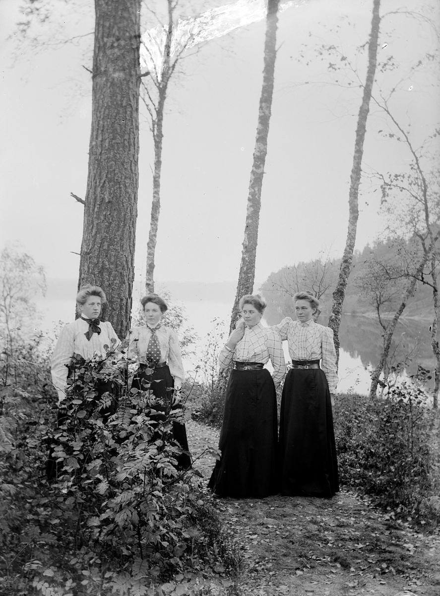 Fyra unga kvinnor från Ökna socken, Vetlanda.