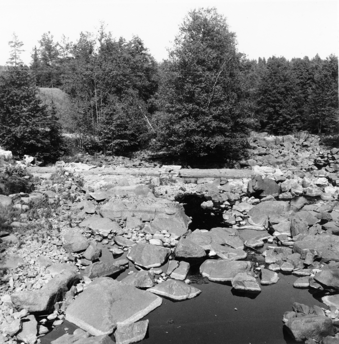 Årännan i Thurefors, Vetlanda, med rester av skivbordet vid gamla kvarnen. Smedjan låg vid den södra åkanten.
