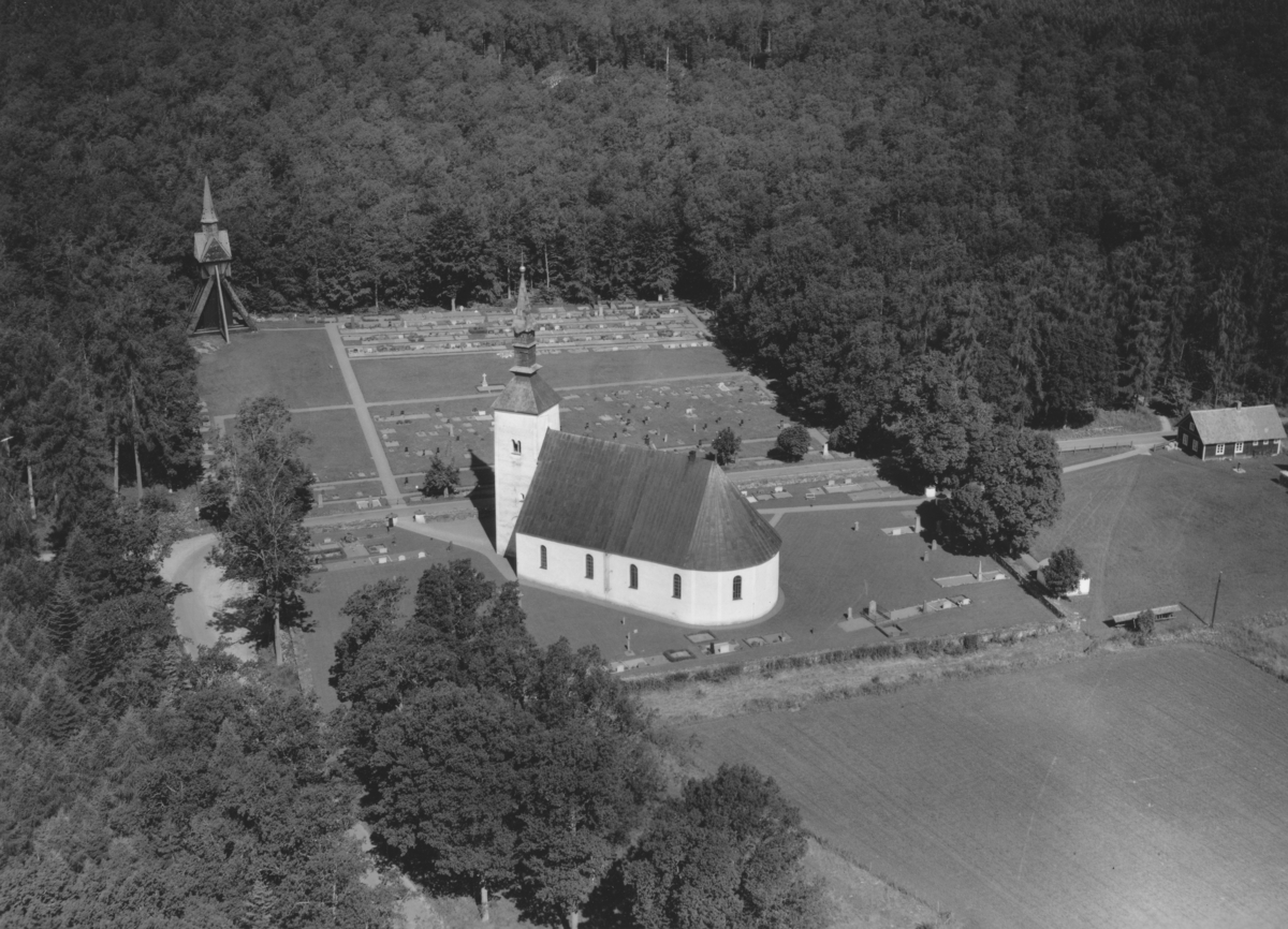 Flygfoto över Brahekyrkan på Visingsö, Jönköpings kommun. Nr O 2.