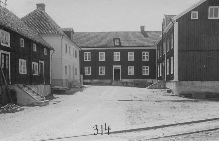 Hus vid Gamla hospitalsgården i Jönköping. Från vänster: Viktualieboden, Sysslomannabostaden, Hospitalsbyggnaden och Kurhuset.