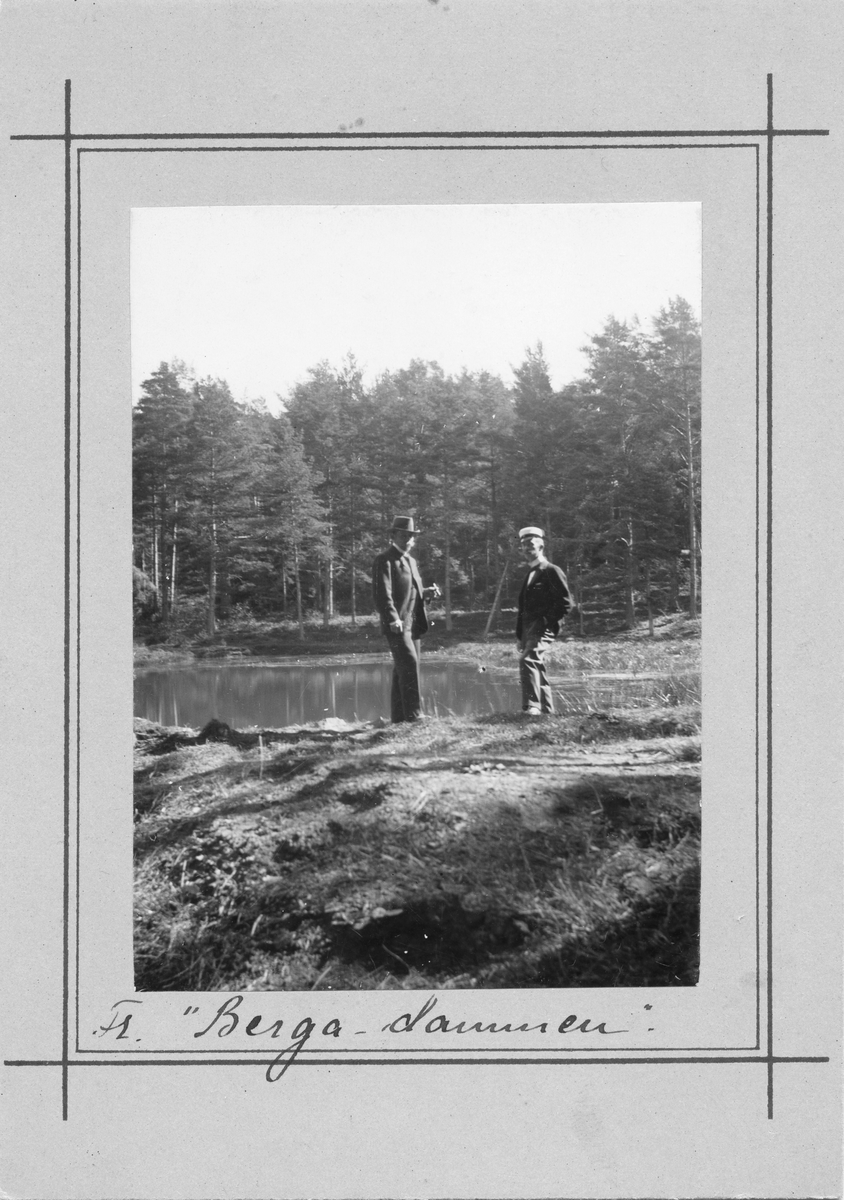 Två män vid Bergadammen i Vattenledningsparken i Jönköping.