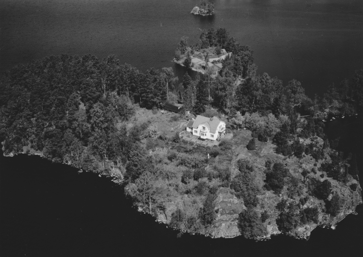 Flygfoto över Romanö i Sommen vid Tranås, Jönköpings län. Nr R 662.