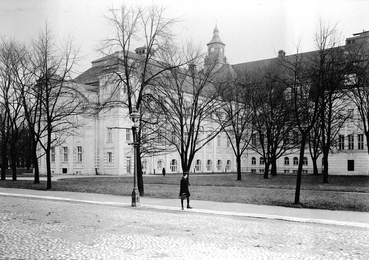 Jönköpings högre allmänna läroverk. Norra flygeln med Kyrkogatan i förgrunden.