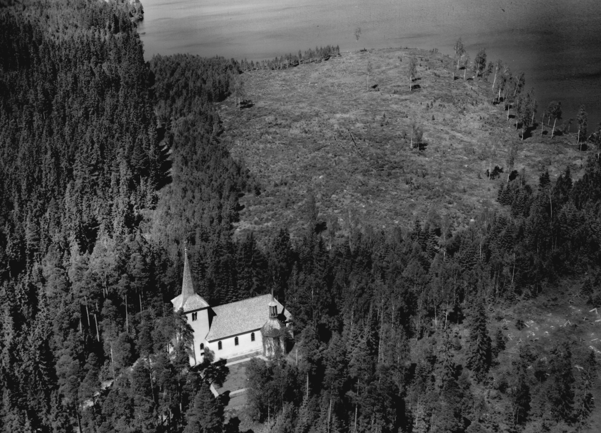 Flygfoto över Ohs kyrka i Värnamo Kommun, Jönköpings län. Nr: 333/1957