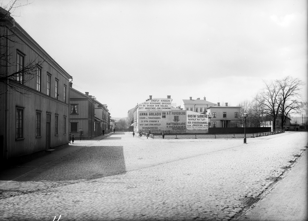 Föreningsgatan mot väster från järnvägsbanken och Rocksjögatan i Jönköping.