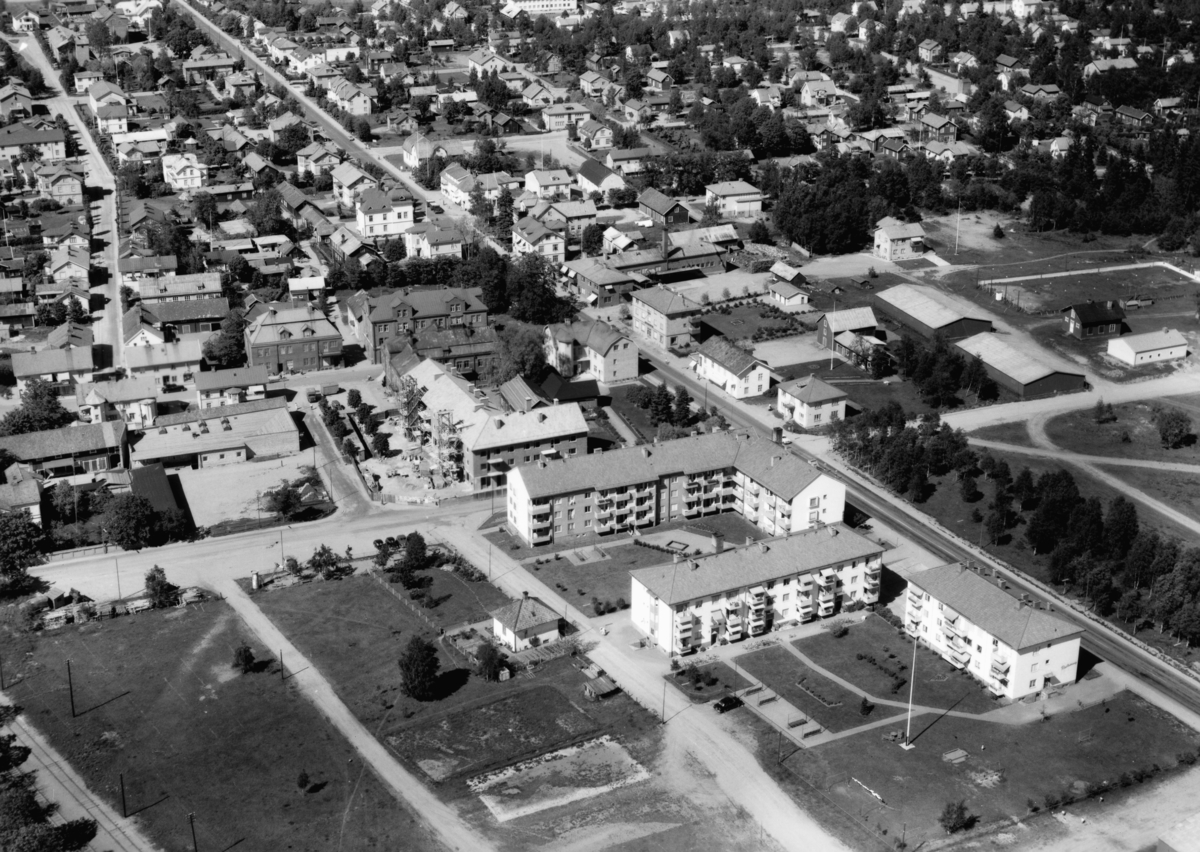 Flygfoto över Skillingaryd i Vaggeryds Kommun, Jönköpings län. Nr: 345/1957