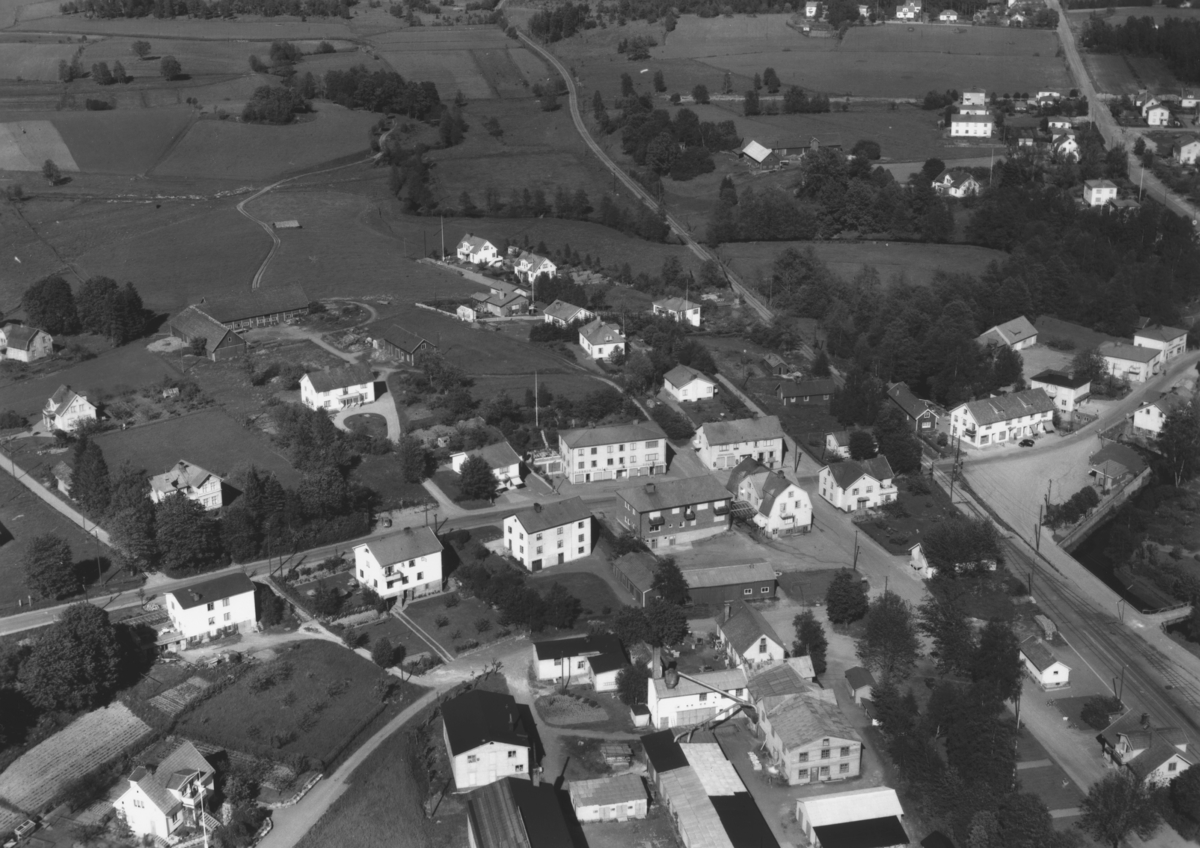 Flygfoto över Landsbro i Vetlanda kommun, Jönköpings län. Nr: 443/1957