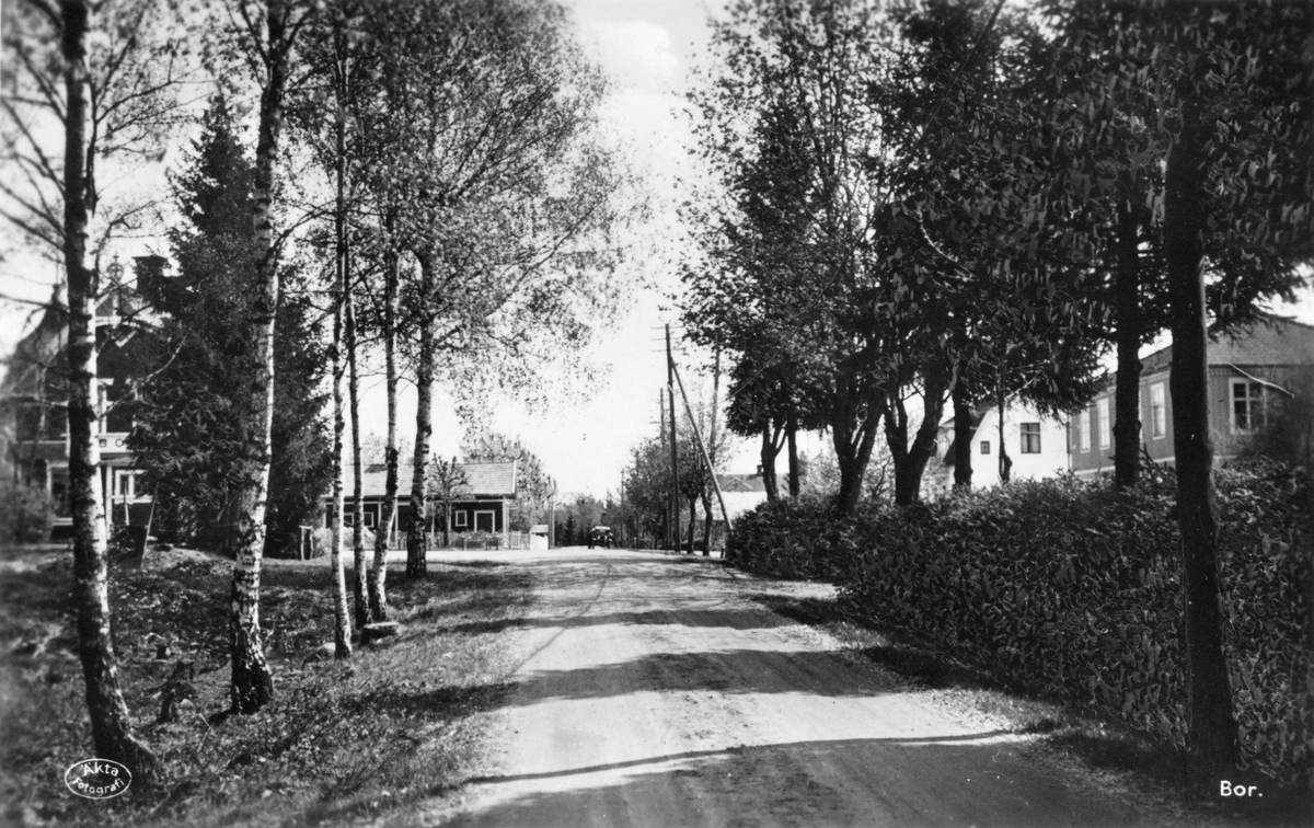Stationsvägen i Bor, Voxtorp, Värnamo kommun. Till vänster järnvägsstationen byggd år 1902 av BAJ, Borås Alvesta järnväg. Idag kust till kust Kalmar - Göteborg. Hiterst till höger gamla Konsum som idag innehas av Voxtorps församling. Bortanför Voxtorps församling går Centrumvägen till höger upp mot riksväg 27.