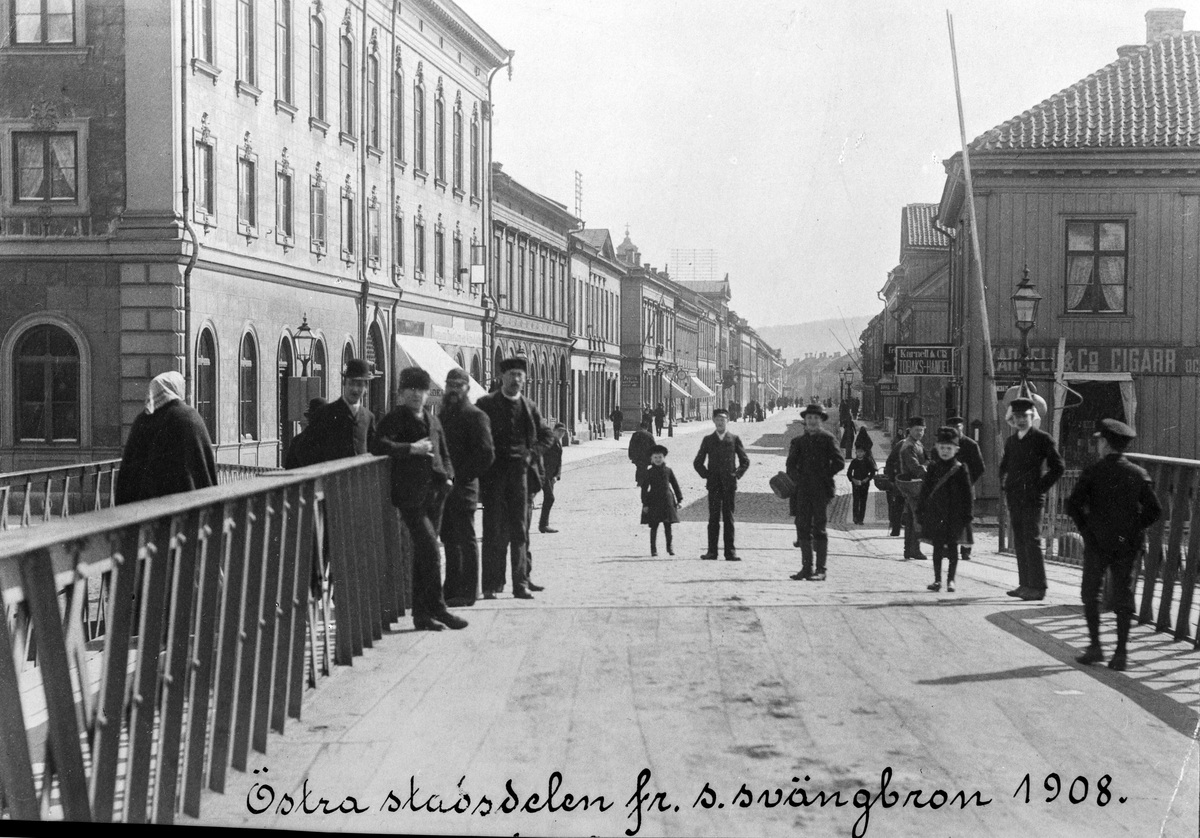 Södra svängbron och Östra Storgatan i Jönköping, mot öster.