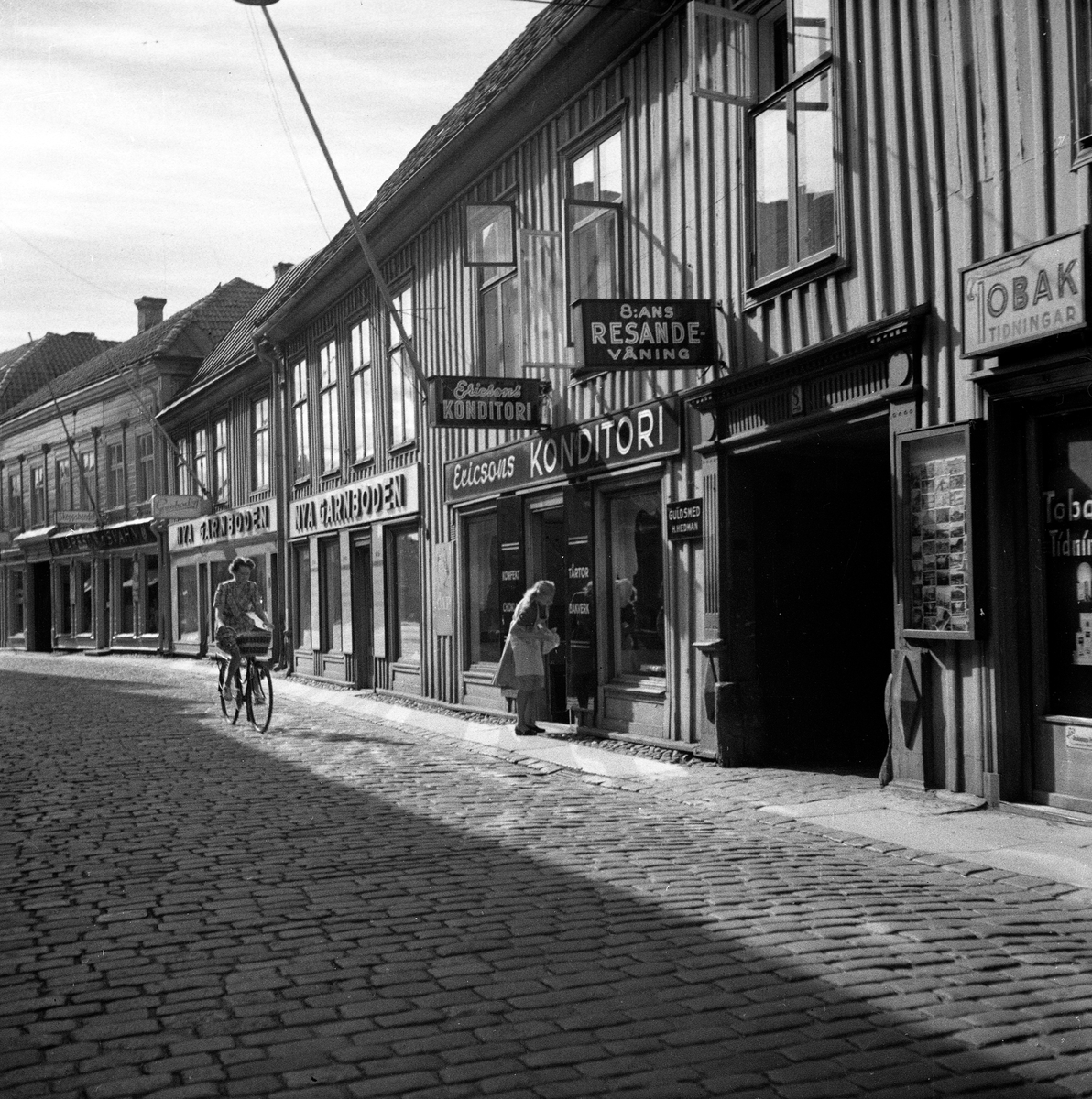 Smedjegatan i Jönköping. Där ligger bland annat Nya garnboden och Ericsons konditori.