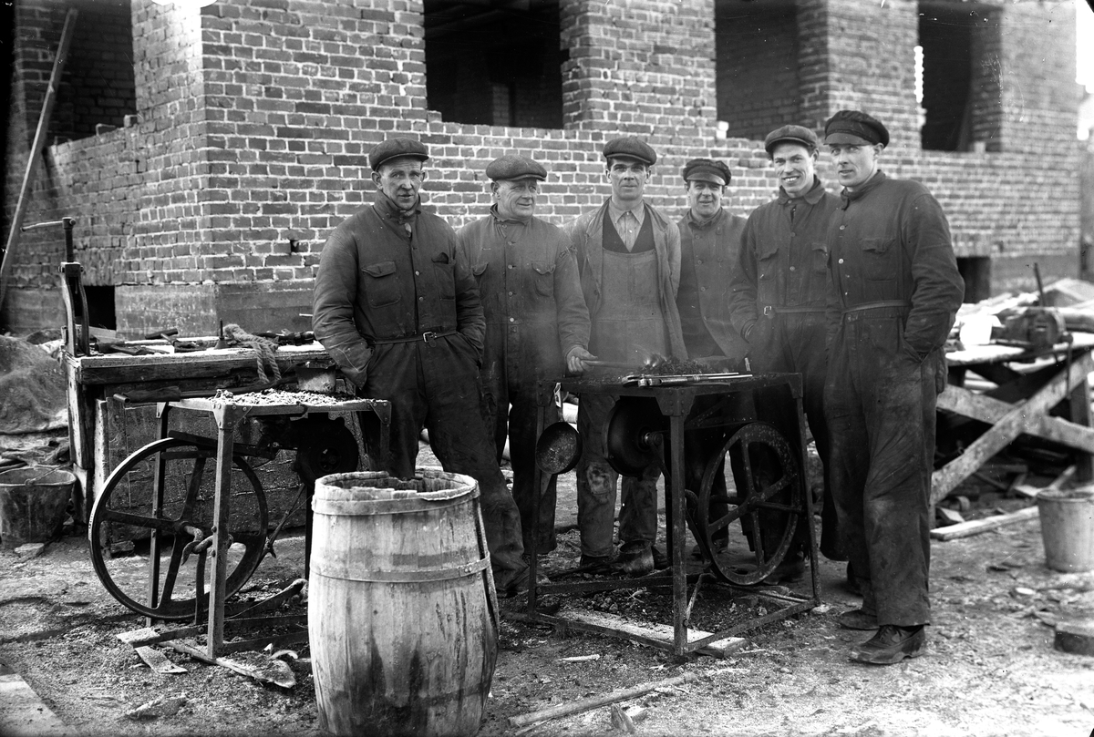 Arbetare vid Sjöströms Rörledningsfirma i Jönköping. Fr. v. Hilding Ryden (1), Axel Karlsson (2), Herman Wern (3), Gerhard Johansson (4), Fritz Berg (5), Stig Svensson (6).