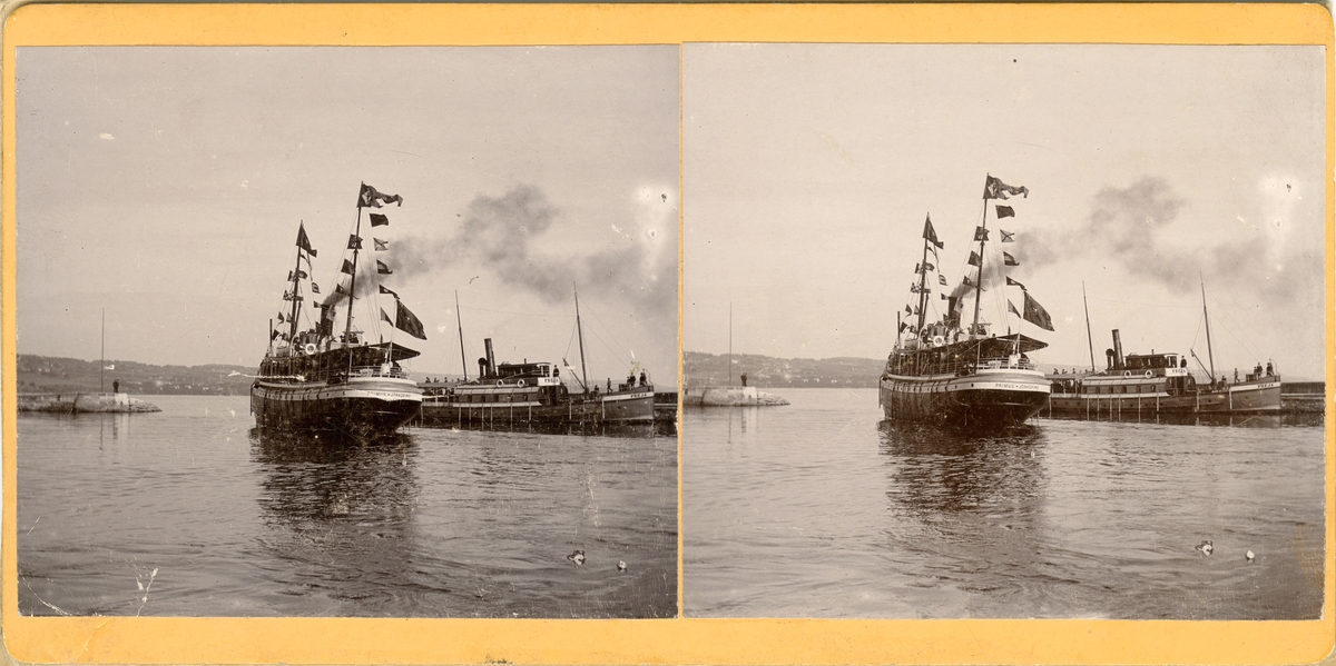 Yttre hamnen i Jönköpinsg med ångfartyget Primus på utgående och ångfartyget Freja vid kajen.