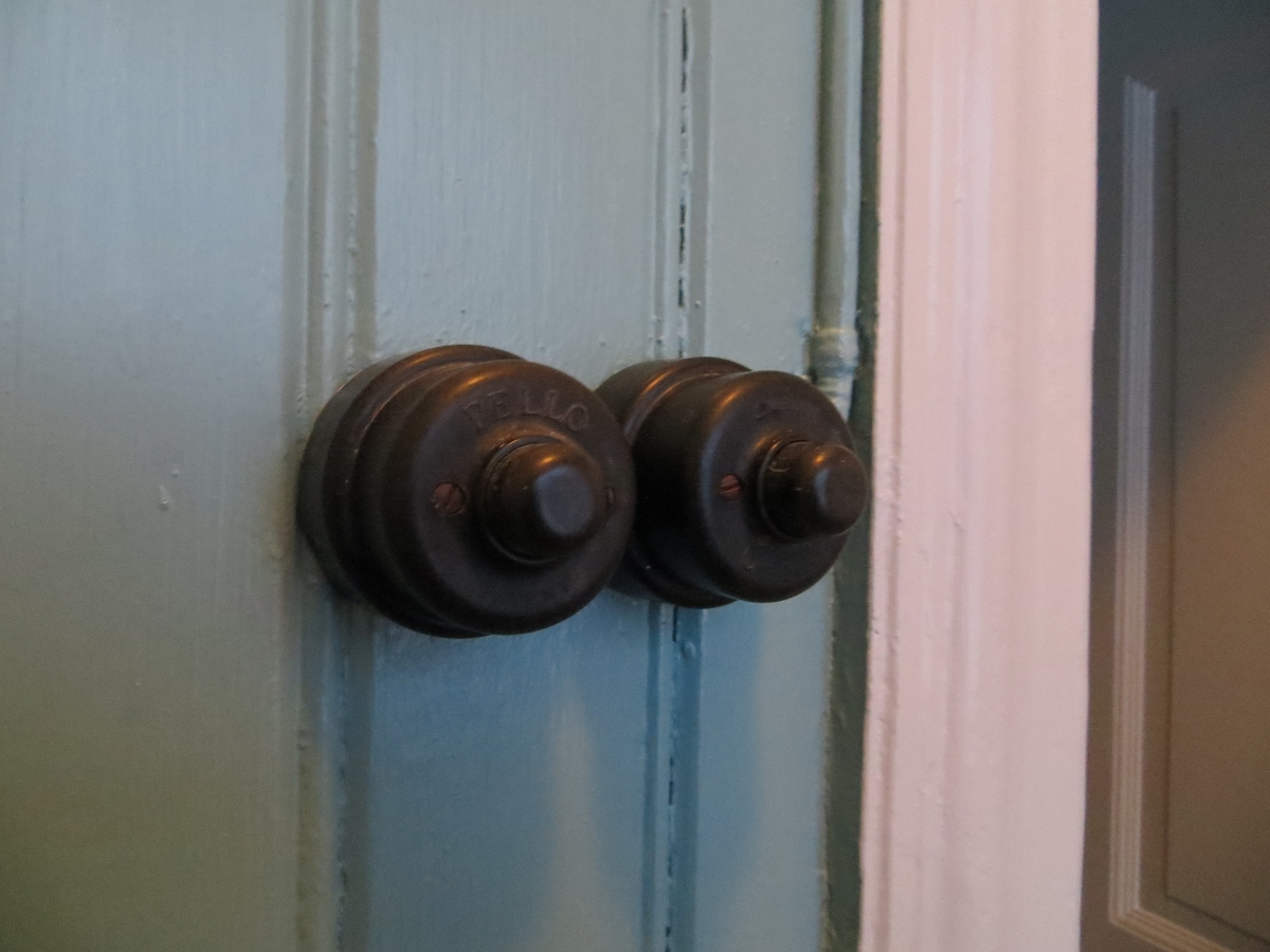 Interiör från Ägersgöls skola i Hults socken, Eksjö kommun. Detaljbild på strömbrytare.